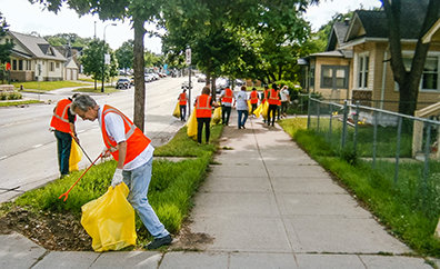 Studien zeigen, dass das Aufräumen von Nachbarschaften Verbrechen und Gewalt reduzieren kann, und das liegt genau im Tätigkeitsbereich von sowohl MAD DADS als auch den ehrenamtlichen Helfern von Der Weg zum Glücklichsein. Die zwei Gruppen taten sich für eine Aufräumaktion in der brisanten Gegend in der Nähe der Emerson Avenue North und der 31st Street in Minneapolis zusammen.