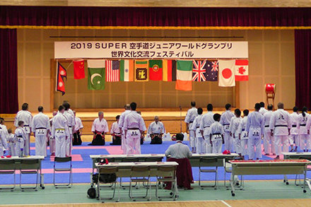 Bei einer Karatemeisterschaft Glücklichsein verbreiten