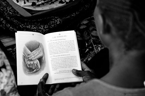 Der Weg zum Glücklichsein wird nun in Malaiisch-Jawi gedruckt, einer in arabischer Schrift geschriebenen Sprache, die im Süden Thailands gesprochen wird. Nun bringt das Heft dieser durch Aufstände verwüsteten Region Hoffnung auf einen dauerhaften Frieden.